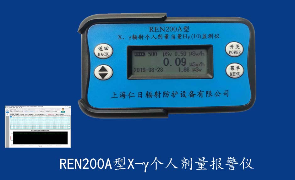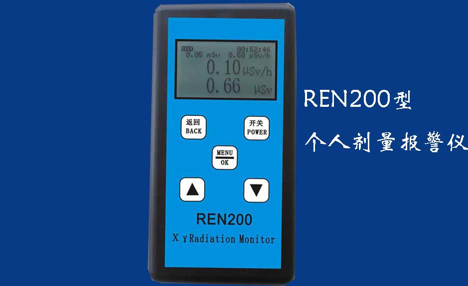 REN200A 個人輻射報警儀REN200A型X、γ輻射個人劑量當量HP(10)監(jiān)測儀(簡稱:個人劑量報警儀)內(nèi)置高靈敏度蓋格計數(shù)管為探測器,主要用來監(jiān)測各種放射性工作場所的X、γ以及硬β射線的輻射,具有響應(yīng)快,測量范圍寬的特點。能顯示工作場所的劑量當量率和累積劑量,更換電池時,日期及累積數(shù)據(jù)能永久保存。可選配RenRiPersonal個人劑量管理軟件,該軟件可存儲多個人的歷史數(shù)據(jù),能記錄日累積、月累積、年累積、輻照時長、計算平均劑量率、扣除或不扣除本底輻射,且以文字和圖譜的方式展現(xiàn)數(shù)據(jù)。廣泛應(yīng)用于核電站、加速器、鋼鐵、化工、同位素應(yīng)用、工業(yè)X、γ無損探傷、放射醫(yī)療、鈷源治療、γ輻照、放射性實驗室、核設(shè)施周圍環(huán)境監(jiān)測等領(lǐng)域中的工作人員進行個人安全防護監(jiān)測及放射性提示。&nb